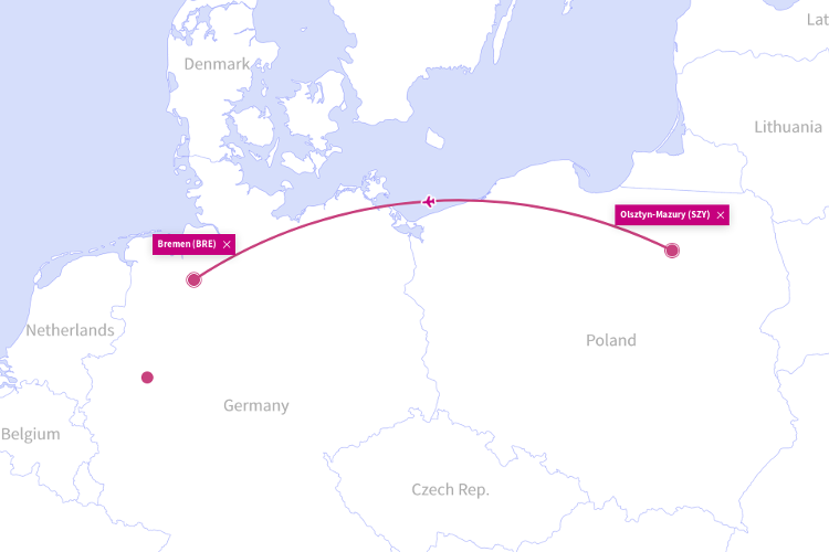 Loty na trasie Olsztyn Mazury (SZY) - Brema (BRE) rozpoczną się od 27 października 2019 roku. Trasa będzie obsługiwana 2 razy w tygodniu - w środy oraz niedziele. Bilety lotnicze dostępne są już w sprzedaży i kosztują od 39 zł w jedną stronę. Będzie to 3 trasa Wizz Air z Mazur. Przewoźnik obsługuje już dwie trasy z mazurskiego lotniska - Dortmundu w Niemczech oraz do Londynu Luton w Wielkiej Brytanii. WsparcieWesprzyj dalszy rozwój serwisu internetowego Warmia-i-Mazury.pl. Nie blokuj i reaguj na reklamy, sprawdź poniższe strony naszych partnerów. W ten sposób zapewniasz sobie dalsze informacje o Warmii i Mazurach za darmo.